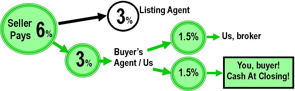The bottom line: Make sure as you begin search and contacting listing agents, they understand we represent you or rather we are your "Buyers Agent". This way getting your home buyer rebate at closing guaranteed.